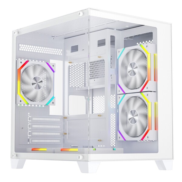 Carcasa 1stPlayer® gaming UV5-wh, 5 ventilatoare aRGB infinity efect plus PWM, telecomanda, Micro-ATX, alb