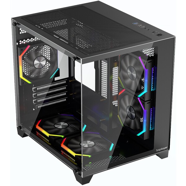 Carcasa 1stPlayer® gaming UV5-bk, Micro-ATX, 5 ventilatoare aRGB infinity efect, telecomanda, negru